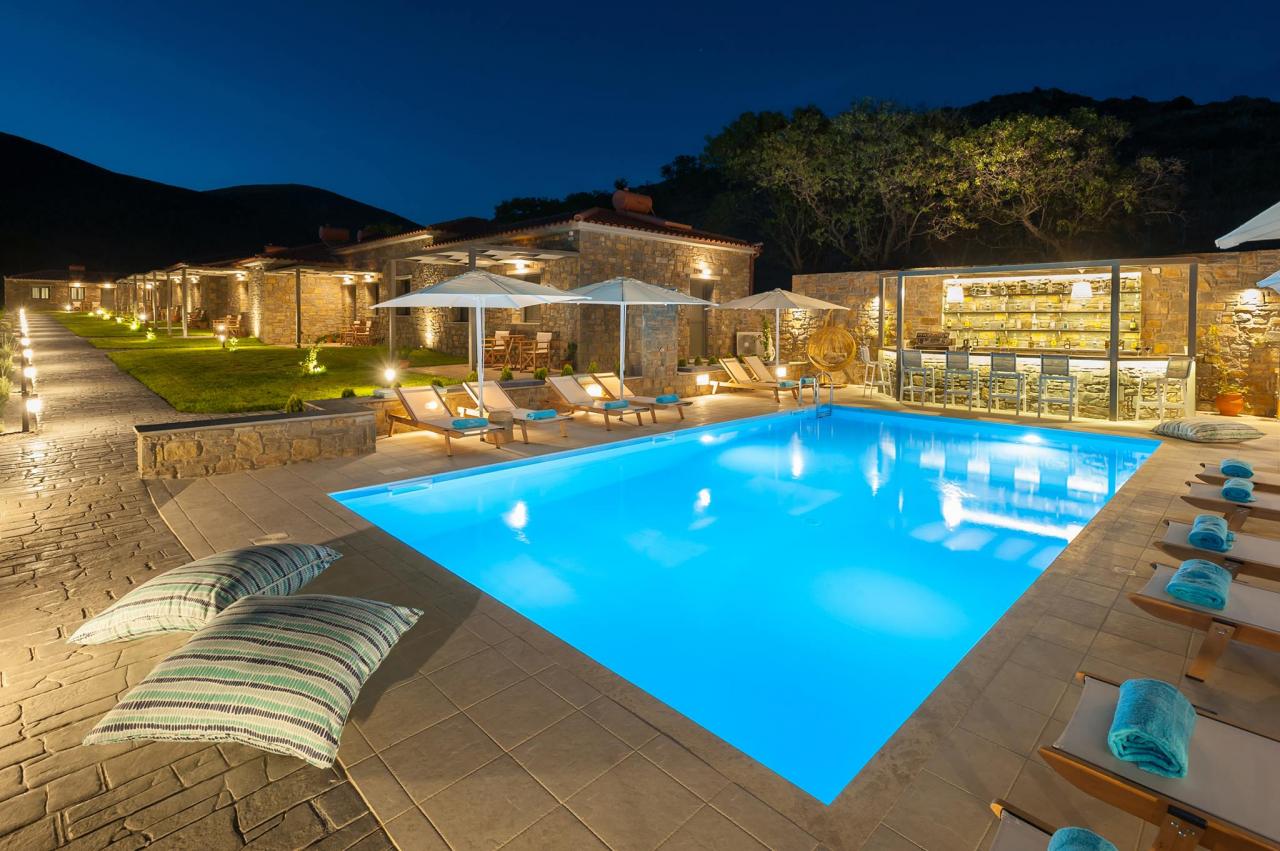 Συνδυάζοντας την παραδοσιακή πέτρινη αρχιτεκτονική με τις σύγχρονες πινελιές, τα δέκα εξοπλισμένα πολυτελή διαμερίσματα έχουν σχεδιαστεί με σκοπό την απόλαυση του επισκέπτη. Ξεκινήστε τη μέρα σας με ένα πλούσιο πρωινό με βάση τις λημνιακές γεύσεις δίπλα στην πισίνα, κάνετε το μπάνιο σας στα κρυστάλλινα νερά της κοντινής παραλίας ή στην πισίνα μας και απολαύστε μία από τις ιδιαίτερες ποικιλίες τοπικών κρασιών στο μπαρ ή από την άνεση του μπαλκονιού σας.